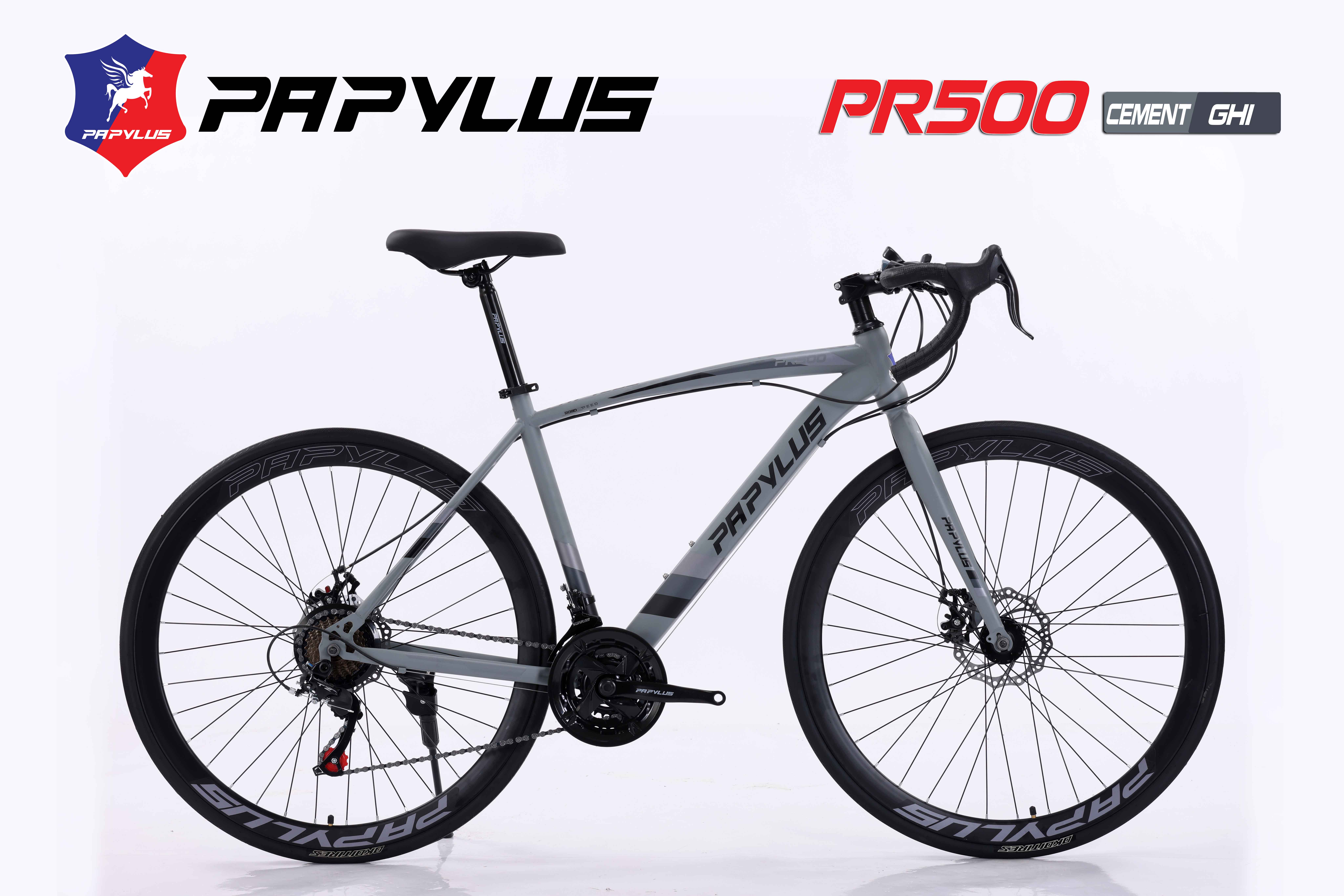 Xe đạp đua PAPYLUS PR500 sở hữu thiết kế sang trọng, thời thượng, đang được ưa chuộng nhờ vào chất lượng vượt trội và giá thành hợp lý. Khung thép cường lực bền bỉ, sơn tĩnh điện chống trầy xước, kết hợp phanh đĩa và tay phanh phụ, mang đến khả năng kiểm soát tuyệt vời. Bộ truyền động 3x7 tốc độ đảm bảo hoạt động ổn định trên mọi địa hình. PAPYLUS PR500 là người bạn đồng hành lý tưởng cho mọi chặng đường.